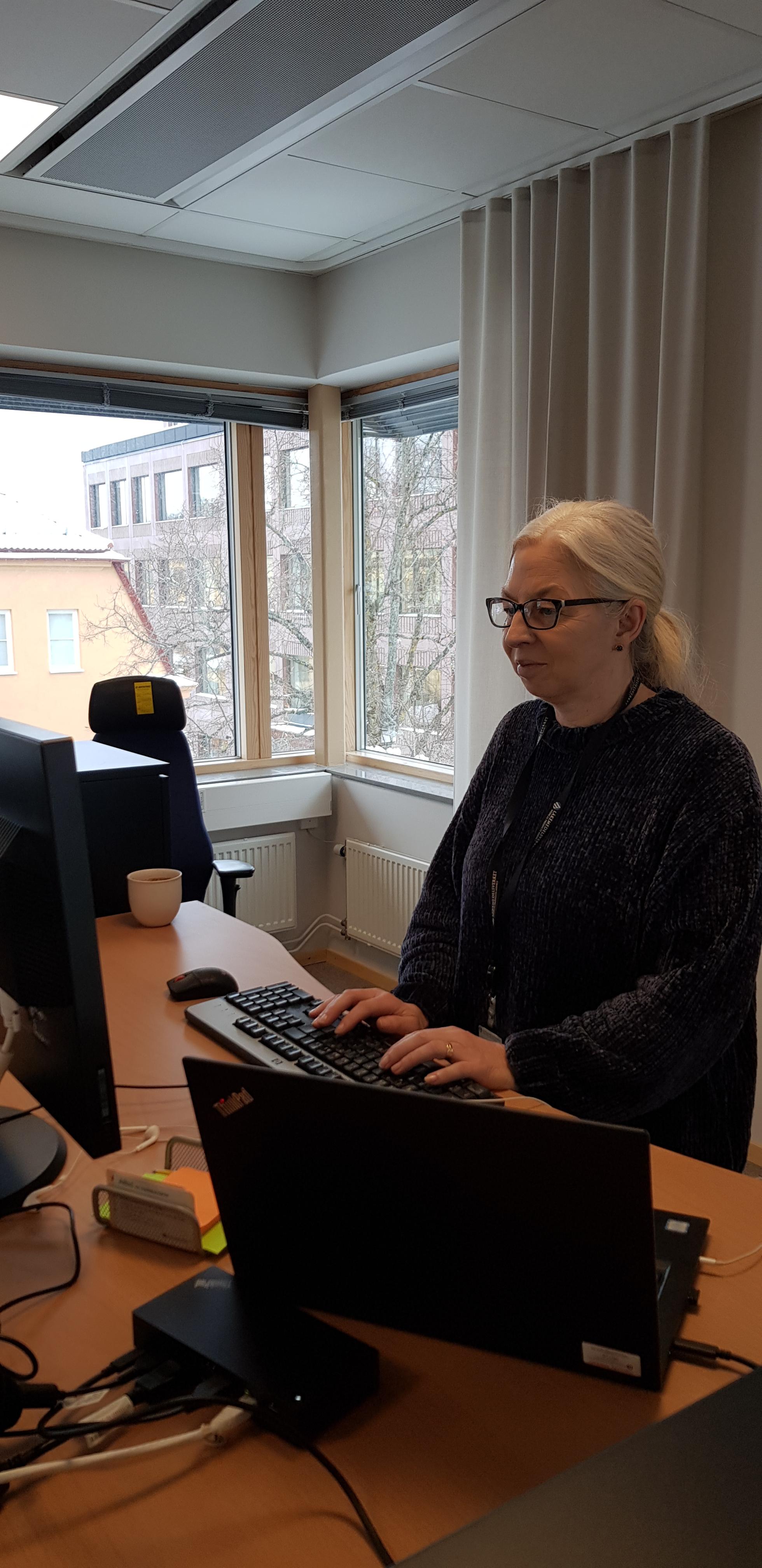 Med träningen vill jag sätta goda vanor, förebygga arbetsrelaterade skador och minska stressen genom en rörelsepaus mitt på dagen.