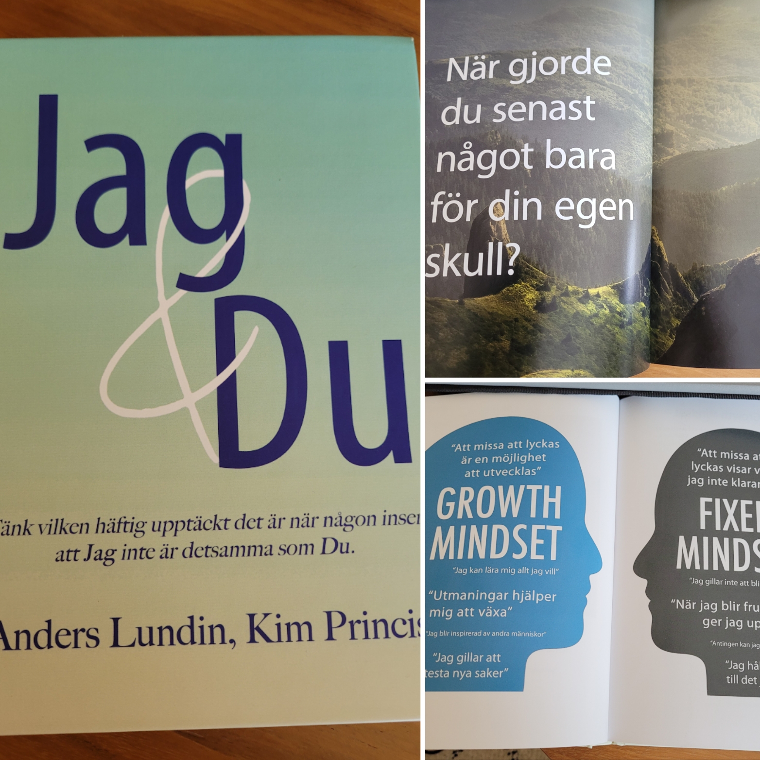 Bokens avsnitt behandlar viktiga frågor som självkännedom, Jag & Du, relationer, ramar, psykologisk trygghet, visdom, förutfattade meningar och från ord till handling.